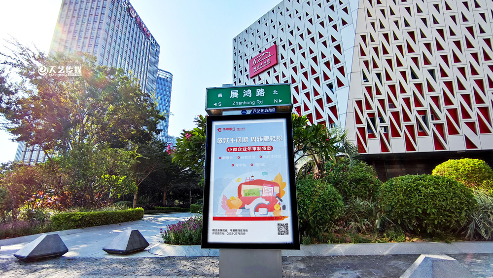 此次華夏銀行廈門分行再度與天藝傳媒合作,投放島內(nèi)多個(gè)主干道位置、商業(yè)區(qū)、寫字樓周邊的城市路名牌,且多為長期投放合作,長時(shí)間多個(gè)黃金位置曝光,為全市人民展示華夏銀行廈門分行精彩紛呈的多檔優(yōu)惠活動及針對小微企業(yè)的保障優(yōu)勢。